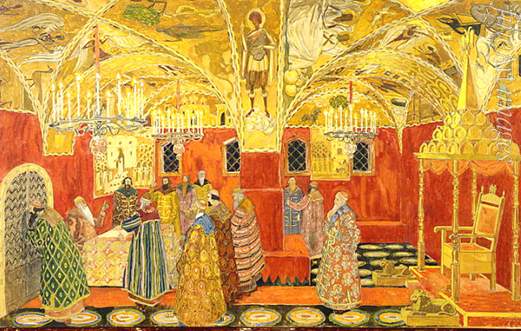 Im Kreml. Bühnenbildentwurf zur Oper Boris Godunow von M. Mussorgski
