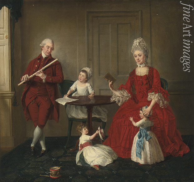 Porträt von Mr. und Mrs. James Blew mit ihren drei Kindern in einem eleganten Interieur