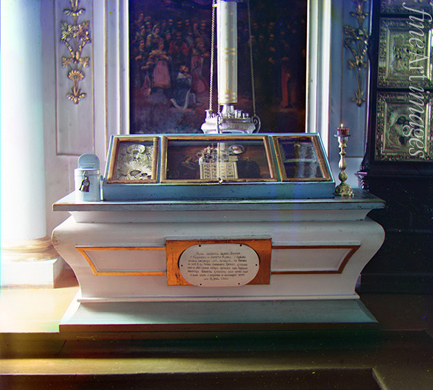 Schrein mit Gebbeine von Fürstinnen Euphrosyne von Stariza und Uljana Dmitrijewna Palezkaja im Gorizy-Auferstehungs-Kloster