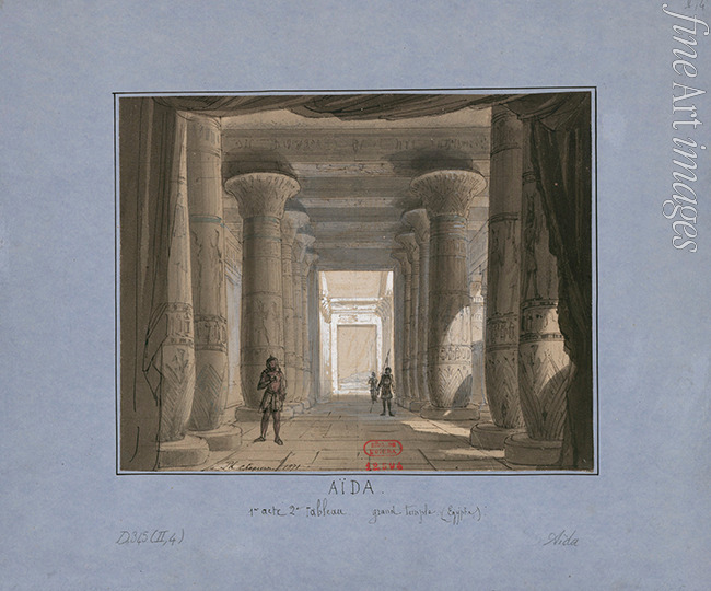Bühnenbildentwurf zur Oper Aida von Giuseppe Verdi. Théâtre de l'Opéra, Kairo