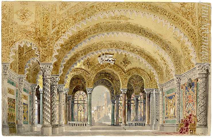 Großes Schlosszimmer, 3. Akt, Bühnenbildentwurf zur Oper Otello von Giuseppe Verdi, Welturaufführung, La Scala, 5. Februar 1887
