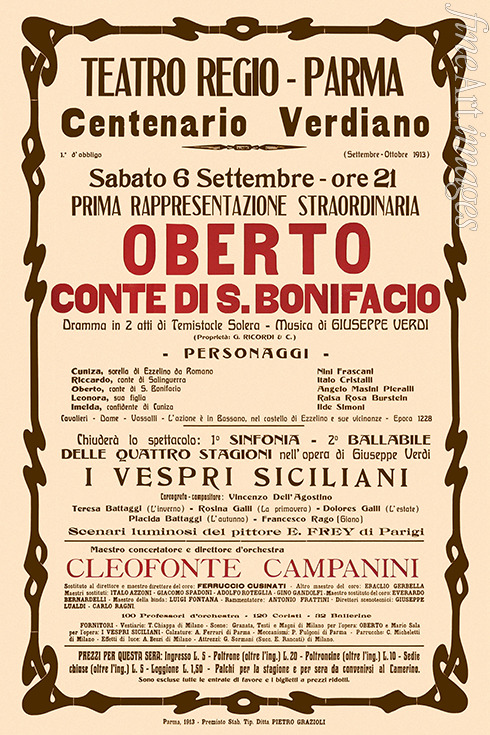 Plakat für die Oper Oberto conte di San Bonifacio von Giuseppe Verdi in Teatro Regio di Parma