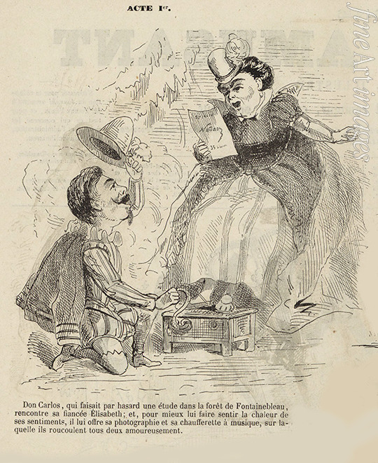 Karikatur auf die Opera Don Carlos von Giuseppe Verdi. Paris, Théâtre de l'Opéra-Le Peletier, 11.03.1867