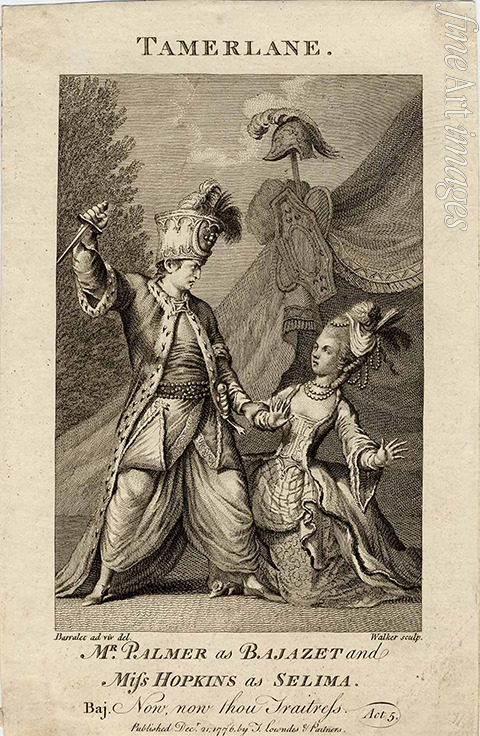 Mr Palmer as Bajazet und Miss Hopkins als Selima in Tamerlane von Nicholas Rowe. (Now, now, thou traitress.)