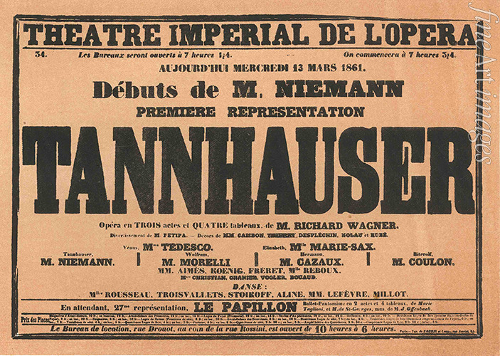 Plakat für die Premiere der Oper Tannhäuser von Richard Wagner in Opéra de Paris