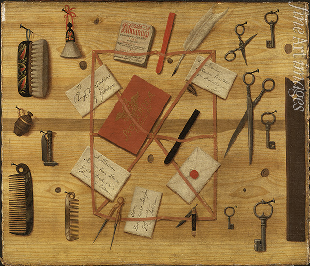 Briefe auf einer Holztafel. Trompe-l'oeil