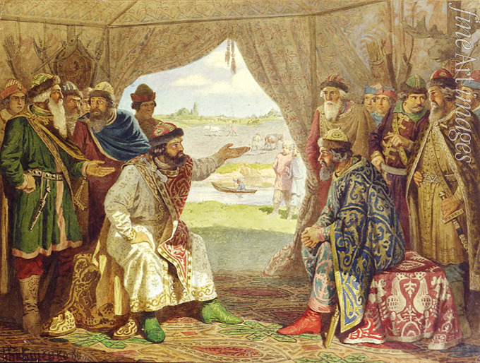 Titel:Großfürsten Wladimir Monomach und Swjatopolk II. auf dem Fürstentag in Dolobsk 1103