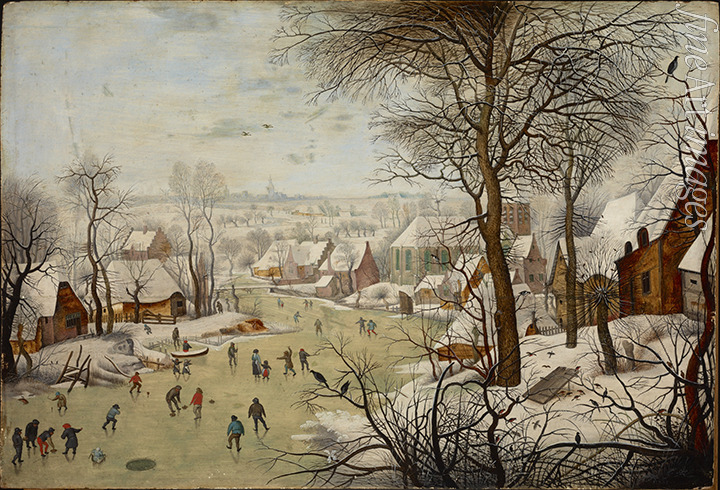 Winter, Winterlandschaft, Schnee, Dorf, Frost, Natur, Jahreszeiten, Poesie, Bäume, Bauernhaus, Am Lande, Dorflandschaft, Haus, Belustigung, Barock, Vogelfalle, Eisbahn, Schlittschuhlaufen, Schlittschuhläufer, Wintersport, Winterszene, Sport, Sportart, Sportarten, Saison, Winterzeit, Flämische Malerei