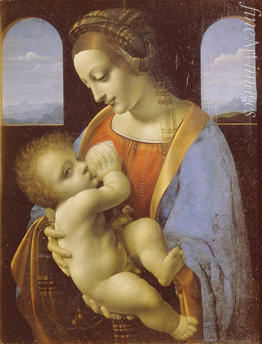 Berglandschaft, Madonna, Bibel, Renaissance, Neues Testament, Maria, Madonna mit dem Kind, Gottesmutter, Jesuskind, Heilige Familie, Italienische Landschaft, Jungfrau, Christuskind, Marienbild, Marienfigur, Madonnenbild, Madonna del Latte, Maria lactans, Galaktotrophousa, Stillende Gottesmutter, Seliger Schoß, Stillende Madonna, Marienbildnis