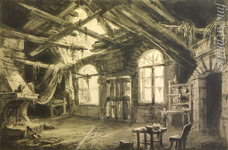 Bühnenbildentwurf zum Theaterstück Das Spielers Leben von V. Ducange