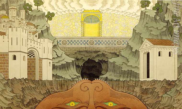 Bühnenbildentwurf zum Theaterstück Mirakelspiel ( Le Miracle de Théophile ) von Rutebeuf