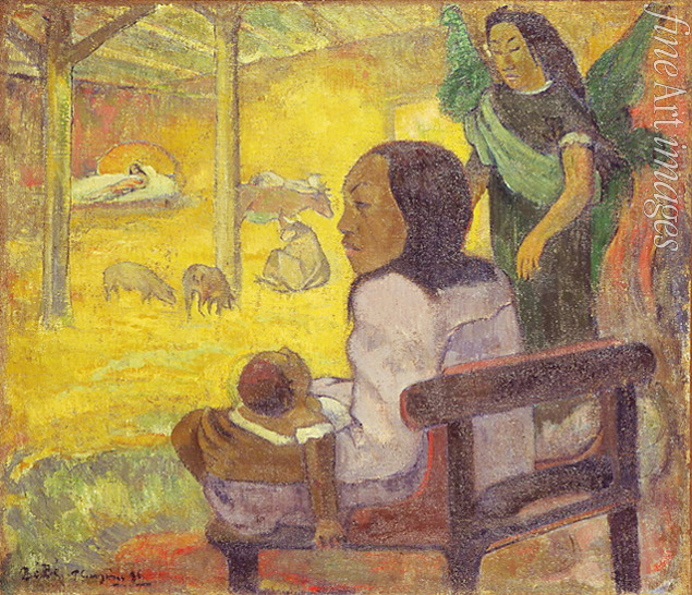 Tahiti, Cloisonismus, Südsee, Polynesien, Poesie, Paradies, Idyll, Tahitianerin, Madonna, Bibel, Engel, Neues Testament, Maria, Gottesmutter, Jesuskind, Heilige Familie, Jungfrau, Christuskind, Madonna und Kind, Weihnachten, Geburt Christi, Krippe, Impressionismus, Marienbild, Impressionisten, Marienfigur, Madonnenbild, Heilige Nacht, Marienbildnis