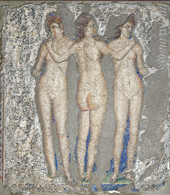 Nackt, Nacktheit, Nackte Frau, Schönheit, Glück, Italien, Römische Mythologie, Ovid, Griechische Mythologie, Griechische Antike, Römische Antike, Gottheit, Süditalien, Drei Grazien, Chariten, Göttinnen der Anmut, Aglaia, Thalia, Euphrosyne, Frohsinn, Glanz, Pompeji, Pompeii, Römisches Reich, Thaleia