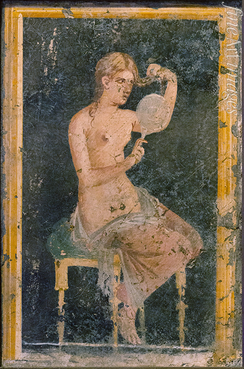 Morgen, Nackt, Nacktheit, Dame, Nackte Frau, Am Bett, Körper, Schönheit, Italien, Toilette, Ovid, Metamorphosen, Erotik, Schmuck, Römische Antike, Frau bei der Toilette, Süditalien, Pompeji, Pompeii, Römisches Reich