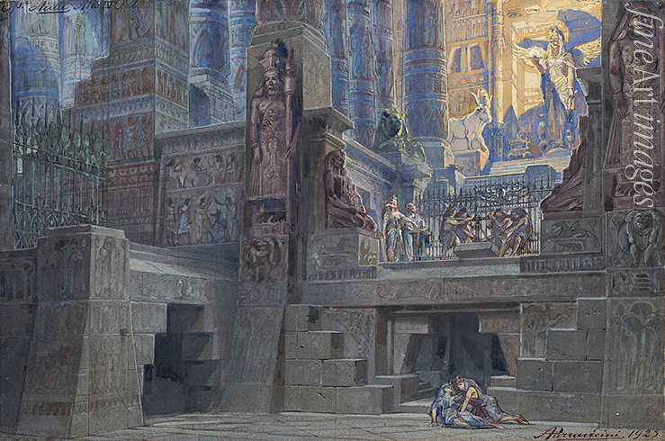 Bühnenbildentwurf zur Oper Aida von Giuseppe Verdi