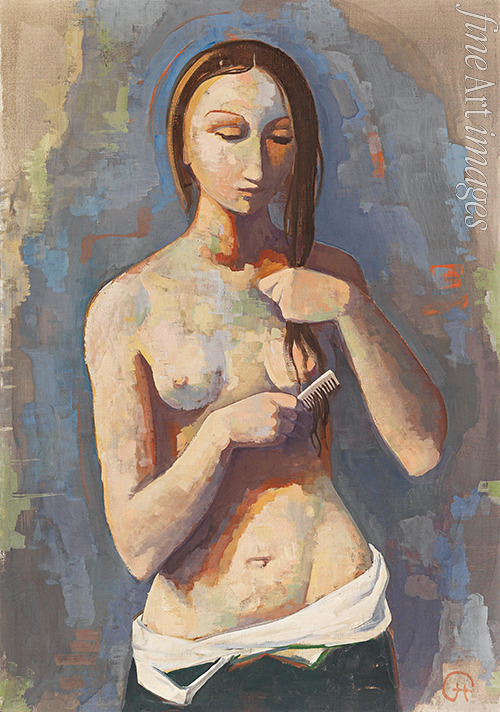 Morgen, Nackt, Nacktheit, Licht, Farbigkeit, Dame, Nackte Frau, Körper, Badende, Bad, Toilette, Nach dem Bad, Haare, Akt, Kämmen