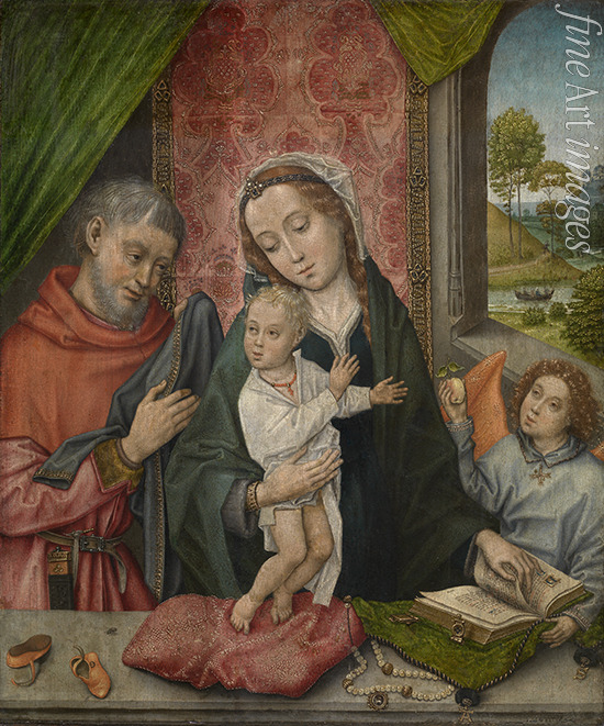 Idyll, Mutterschaft, Madonna, Bibel, Neues Testament, Rast, Maria, Gottesmutter, Jesuskind, Heilige Familie, Mutter, Buch, Schmuck, Perlenkette, Jungfrau, Christuskind, Joseph, Gottes Engel, Apfel, Marienbild, Josef, Marienfigur, Madonnenbild, Schuh, Perlenschmuck, Perlen, Perlenhalsband, Sandale, Sandalen, Marienbildnis