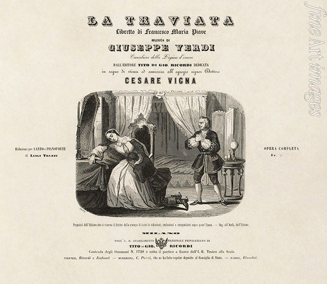 Titelseite der ersten Ausgabe von Klavierauszug der Oper La Traviata von Giuseppe Verdi