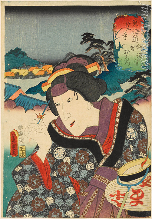 Kasagawa zwischen Narumi und Miya: Iwai Tojaku I als Otatsu. Aus der Serie Die 53 Stationen der Tokaidostraße (Tokaido gojusan t