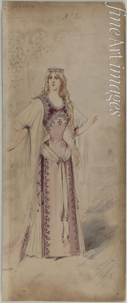 Kostümentwurf für Ella Russell als Elisabeth in der Oper Tannhäuser von Richard Wagner
