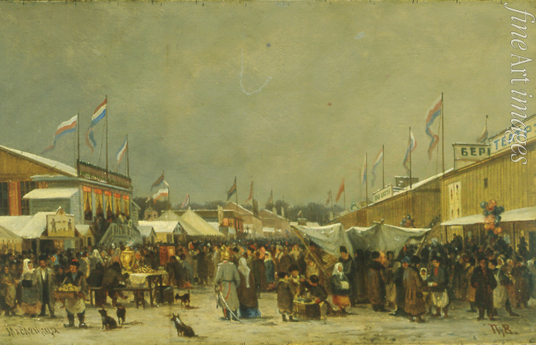 Winter, Winterlandschaft, Schnee, Frost, Jahreszeiten, Stadtbild, Mardi Gras, Karneval, Volksfest, Fasching, Fastnachtszeit, Farbigkeit, Russland, Pferd, Belustigung, Feier, Genreszene, Folklore, Markt, Verkauf, Brauchtum, Schlitten, Stadtszene, Jahrmarkt, Bude, Marktbude, Faschingszeit, Spass, Ostern, Balagan, Balagane, Schaubuden, Spielbuden, Komödiantenbuden, Jahrmarktsbude, Schaubude, Spielbude, Komödiantenbude, Masleniza, Betonung auf der ersten Silbe, Butterwoche, Osterfest