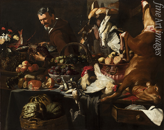 Auf dem Tisch, Dienerschaft, Familienleben, Schüssel, Barock, Küche, Gemüse, Kochen, Alltag, Haushalt, Küchentisch, Koch, Gastronomie, Esskultur, Speise, Kochkunst, Kulinarie, Mahlzeiten