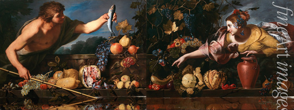 Idylle am Brunnenbecken (Stillleben mit männlicher Figur und Stillleben mit weiblicher Figur)
