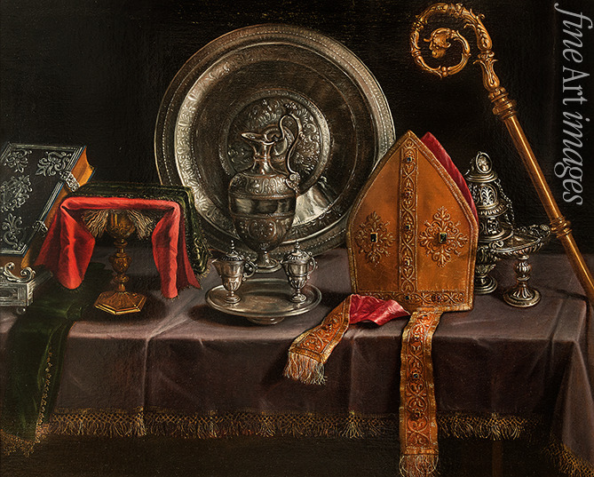Stillleben mit Bischofsinsignien und Silber
