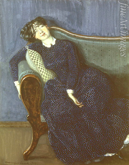 Dame, Mädchen, Im Zimmer, Russland, Haus, Schlaf, Traum, Junge Frau, Interieur, Ruhe, Heim, Friede, Wohnen, Wohnzimmer, Wohnung, Schlafende Frau in Blau, Couch, Sofa, Schlafende Frau