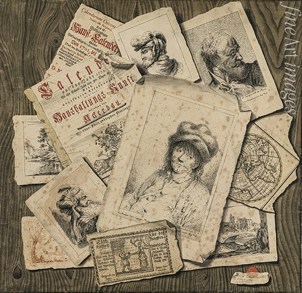 Trompe l'oeil. Druckgraphiken und Buchausrisse auf Holz