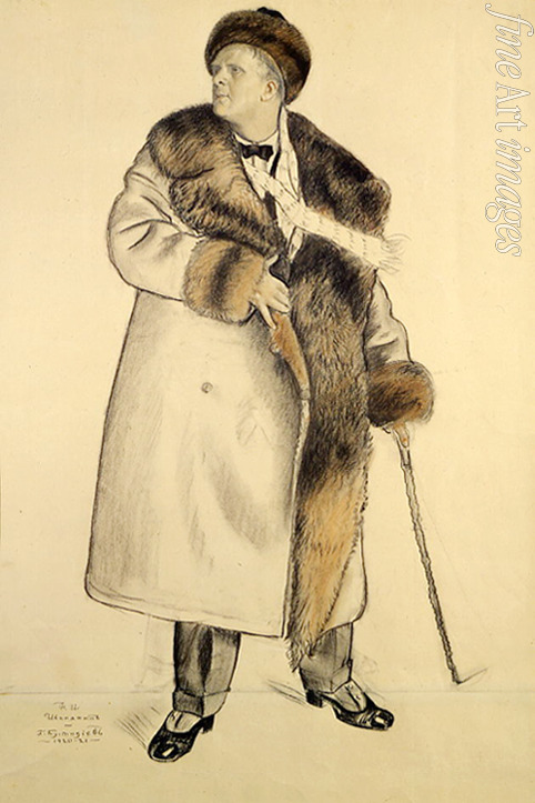 Ballett, Mann, Russische Musik, Sänger, Bildnis, Male Porträt, Schauspieler, Theater, Singen, Oper, Porträt des Sängers Fjodor Schaljapin, Pelzmantel, Pelzmütze, Spazierstock, Modisch, Gesang, Schaljapin, Schaliapin, Chaliapine, Chaliapin