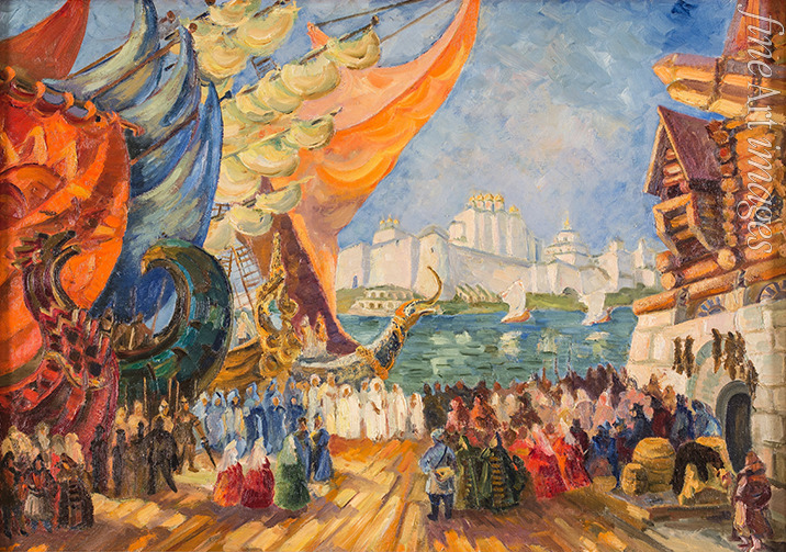 Nowgoroder Markt. Bühnenbildentwurf zur Oper Sadko von N. Rimski-Korsakow