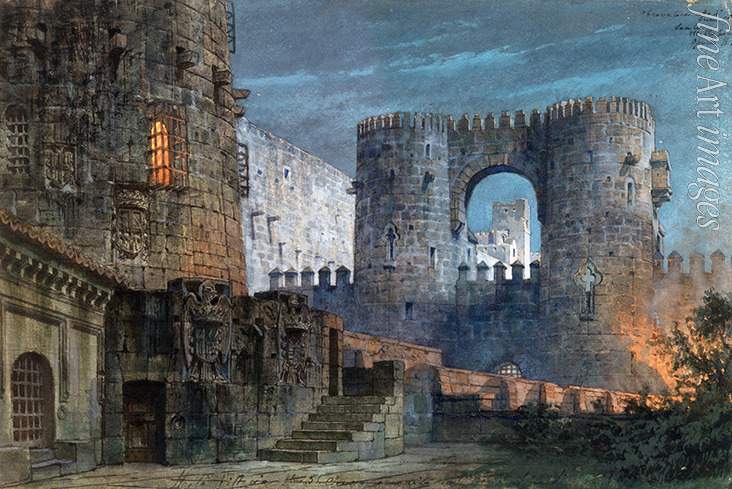 Festung Castellor. Bühnenbildentwurf zur Oper Il trovatore von Giuseppe Verdi