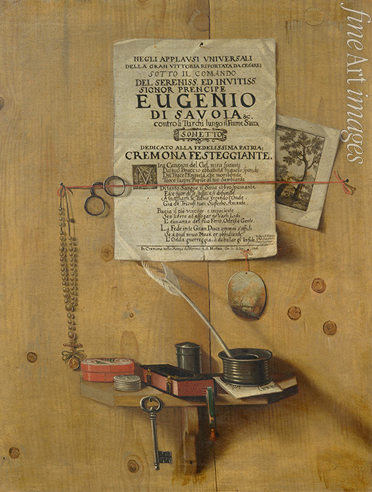 Trompe-l'œil mit Gedicht und Schreibzeug