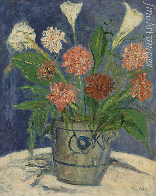 Vase d'arums et de dahlias (Vase mit Aronstab und Dahlien)