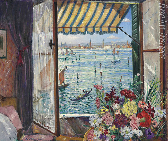 Fenster, Sonne, Blumen, Stadtbild, Sonnenlicht, Mittag, Tageszeiten, Lichtwirkung, Italien, Ansicht, Boote, Venedig, Venezia, Golf von Venedig, Canal Grande, Uferstrasse, Italienische Landschaft, Gondel, Gondoliere, Lagune von Venedig, Adriatisches Meer