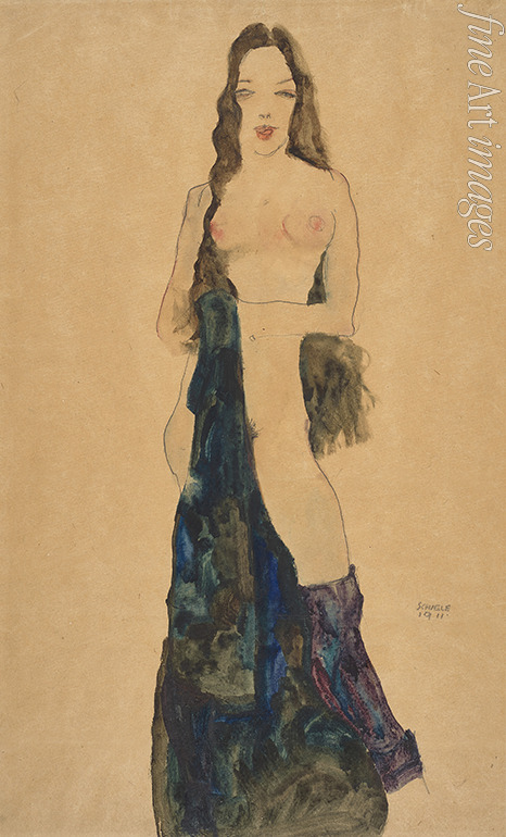 Stehender Akt mit Draperietuch
