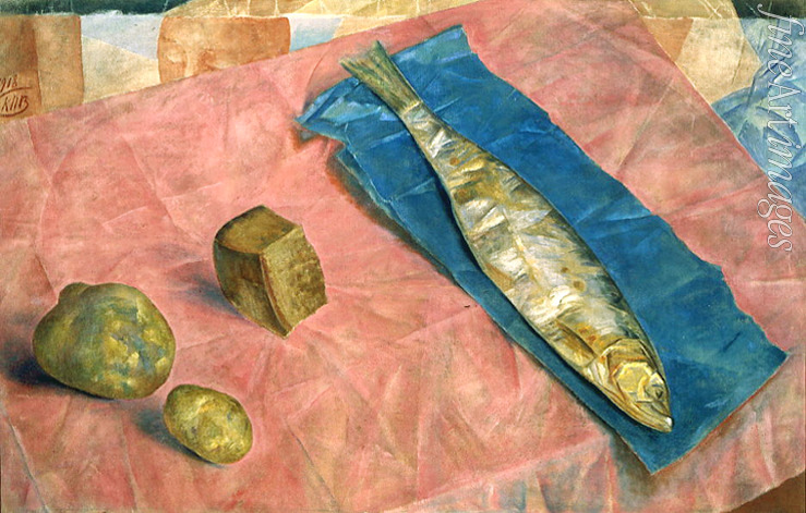 Armut, Blau, Rosa, Lichtwirkung, Am Tisch, Russland, Revolution, Russische Revolution, Hering, Brot, Hunger, Not, Kartoffel, Hungersnot