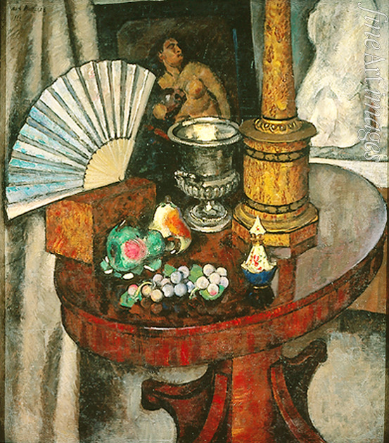 Keywords: Fan, Sculpture, Cup, At the Table, Pears, Grapes, Modern, Russian Avant-garde, Paintings, Still life with a fan, Oval, Jack of Diamonds, Knave Of Diamonds, Neo-Primitivism