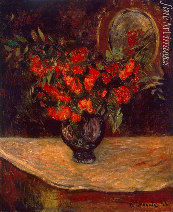 Keywords: Flowers, Tahiti, Cloisonism, South Pacific, Polynesia, Sun light, Paradise, Bunch of Flowers, Idyll, Impression, At the Table, Impressionism, Impressionists, Otto Krebs, Red Flowers, Bouquet