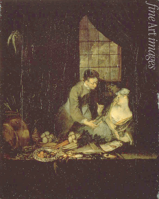 Lady, Man, Lovers, Relationship, Covered table, Erotic, Interior, Vegetables, Rococo, Aristocracy, At the Table, Love affair, Love scene, Sitting room, Living room, In the room, Amusing, Amorous, Flirt, Loveplay, Flirting servant, Flirting, Prank, Fun, Servant