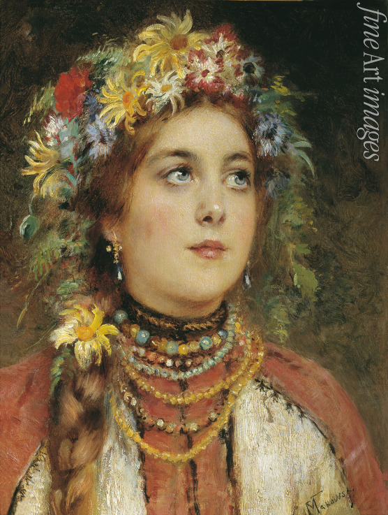 Decorative, Girl, Woman, Peasant, Russia, Pleasure, Amusement, Garland, Folklore, Traditional, Traditional dress, Province, Country women, Smile, Traditional costume, Garland of flowers