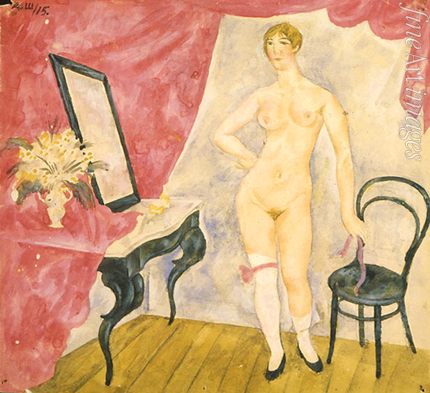 Decorative, Nude, Nudity, Lady, Girl, Nude woman, Body, Woman, Beauty, Chair, Impression, Russia, Youth, Erotic, Young Woman, Mirror, Toilet table, Woman's portrait, Female portrait, Sexy, Modern, Russian Avant-garde, Akt, Lady at the mirror