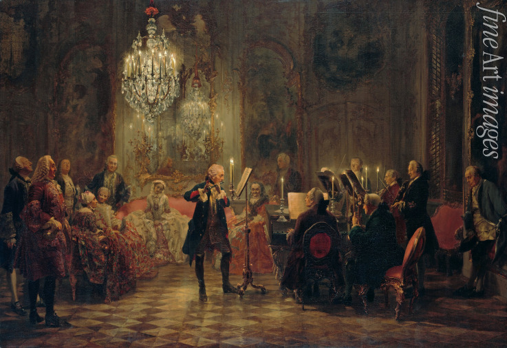 Keywords: Music instruments, Violin, Flute, Ladies, Amusement, Pipe, Musician, Playing music, Music lovers, Sheets of music, Scores, Nobility, Aristocracy, Germany, Gentlemen, Bach, Concert, Musical instruments, Prussia, Frederick the Great, Frederick II, Sanssouci, Flautist, King of Prussia, Hohenzollern, Frederick II of Prussia, History of Germany, Johann Sebastian Bach, German History, Musical instrument, Brandenburg, Elector of Brandenburg, Electorate of Brandenburg, Old Fritz, Flute Concert, Flutist, Sheet music