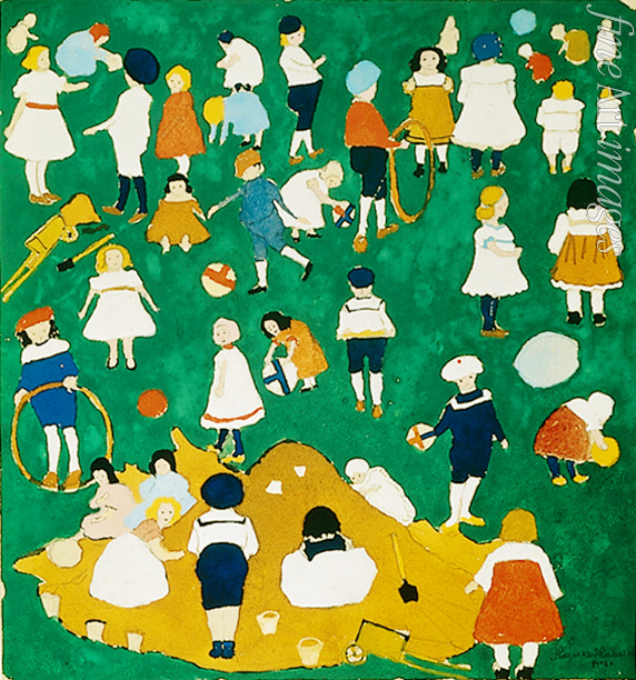 Decorative, Fauvism, Colourfulness, Russia, Children, Play, Boys, Modern, Childhood, Russian Avant-garde, Youths, Kindergarten, Sandpit, Cubofuturism, Cubo-Futurism
