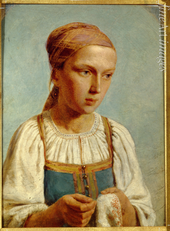Russia, Young Woman, Family life, Everyday, Embroiderer, Embroidery, Folklore, Traditional, Traditional dress, Traditional costume, Needlework, Russian dress, Sarafan, Kokoshnik, Embroideress, Fancy work, Sewing, Headgear, Headwear, Headdress