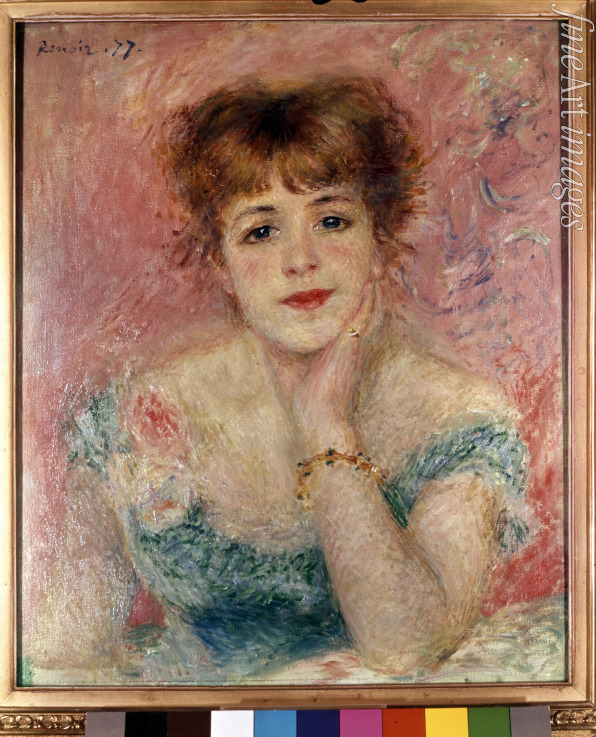 Poetry, Pink, France, Actress, Light, Colourfulness, Lady, Red haired, Beauty, Impression, Dekolleté, Woman's portrait, Female portrait, Impressionism, Portrait of the actress Jeanne Samary, Impressionists, Samary, Jeanne Samary