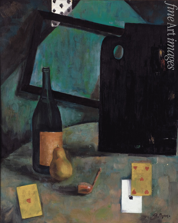 Fruits, Wine bottle, Bottle, Still life, Play, Palette, Pears, Russian Avant-garde, Newspaper, Wine grapes, Saw, Red wine, Card game, Card player, Card, Playing card, Jean Pougny, Pougny, Pougni, Gambler, Gamblers, Card Players