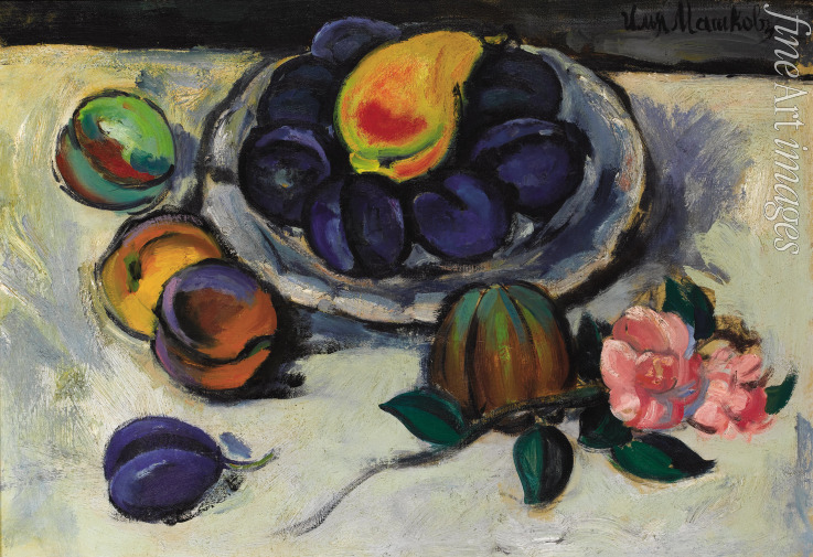 Keywords: Fruits, Peaches, Naive Art, At the Table, Plums, Russian Avant-garde, Primitivism, Folk art, Jack of Diamonds, Knave Of Diamonds, Neo-Primitivism