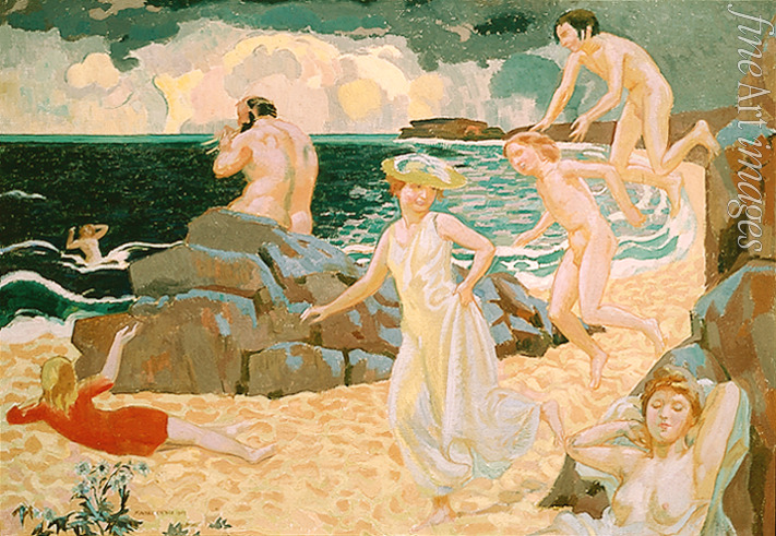Decorative, Local Colours, Fauvism, Nature, Poetry, Music, Sun light, Nude, Nudity, Light, Colourfulness, Sea, Sea landscape, Shore, Seashore, Bay, Water, Flute, Cliffs, Banks, Mythology, Greek Mythology, Pastoral, Polyphemos, Son of Poseidon, Cyclop, Odyssey, Homer, Ancient Greece, Nude body, Hero, Ulysses, Odysseus, King of Ithaca, Ancient Greek, Legend, Iliad, Trojan War, Flautist, Flutist